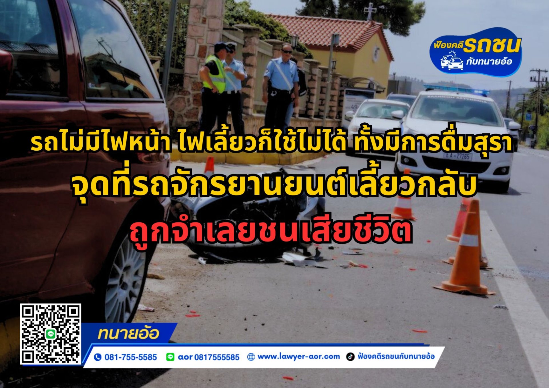 รถไม่มีไฟหน้า ไฟเลี้ยวก็ใช้ไม่ได้ ทั้งมีการดื่มสุรา จุดที่รถจักรยานยนต์เลี้ยวกลับ ถูกจำเลยชนเสียชีวิต