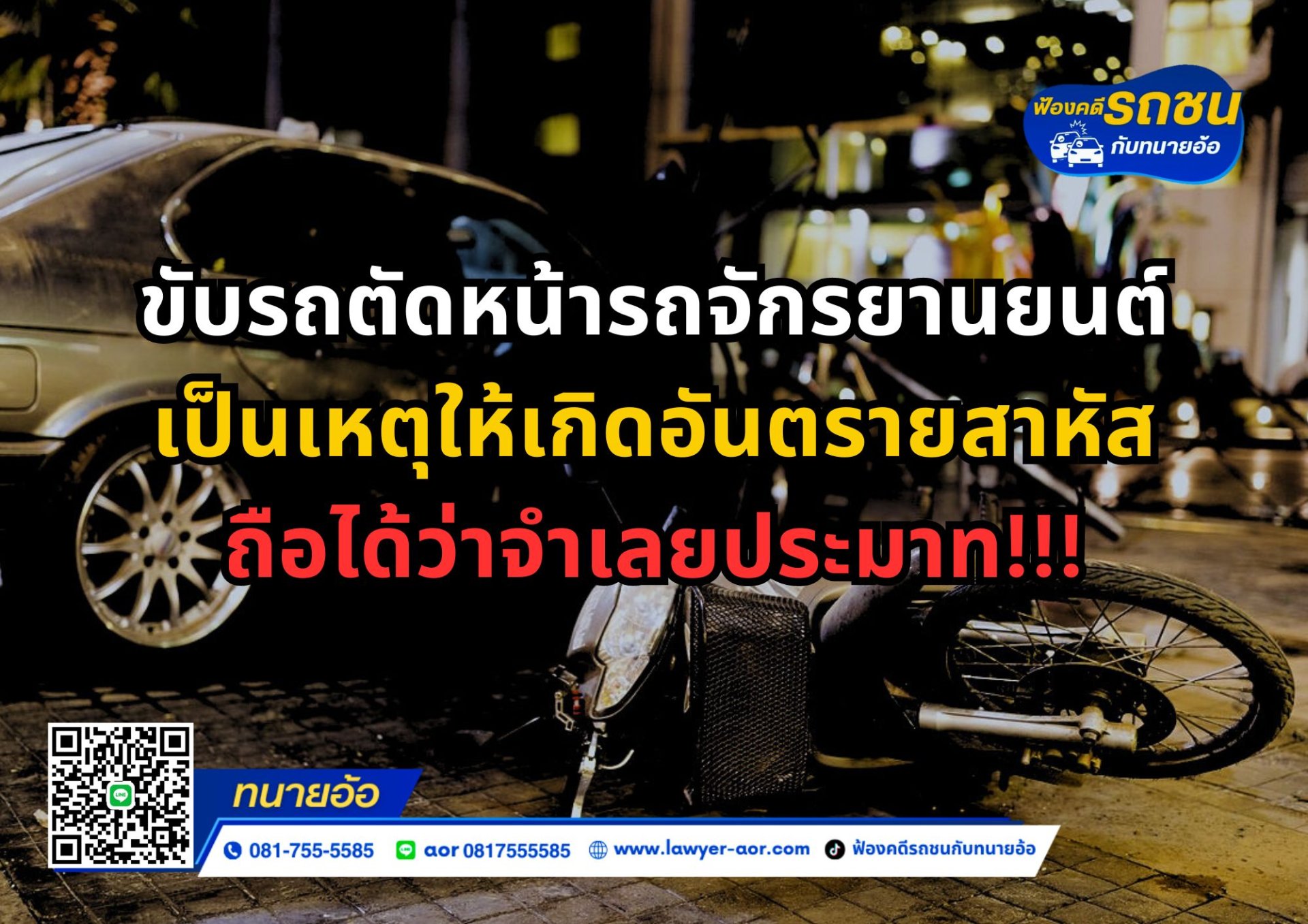 ขับรถตัดหน้ารถจักรยานยนต์ เป็นเหตุให้เกิดอันตรายสาหัส ถือได้ว่าจำเลยประมาท!!!