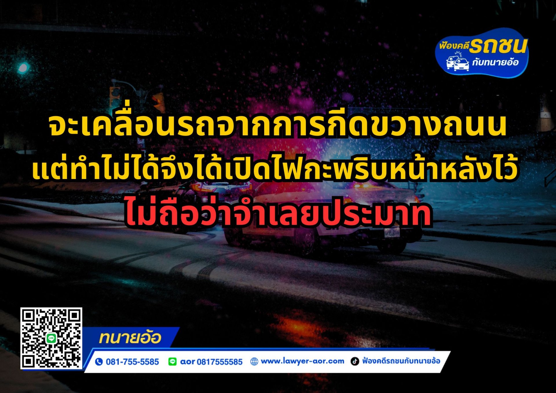 จะเคลื่อนรถจากการกีดขวางถนน แต่ทำไม่ได้จึงได้เปิดไฟกะพริบ หน้าหลังไว้ ไม่ถือว่าจำเลยประมาท