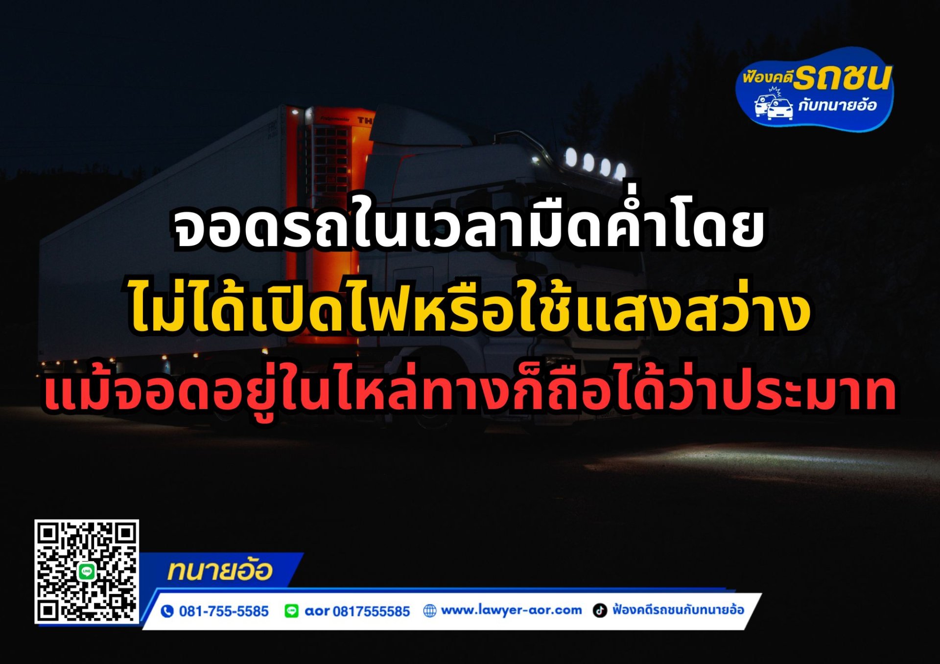 จอดรถในเวลามืดค่ำโดย ไม่ได้เปิดไฟหรือใช้แสงสว่าง แม้จอดอยู่ในไหล่ทางก็ถือได้ว่าประมาท