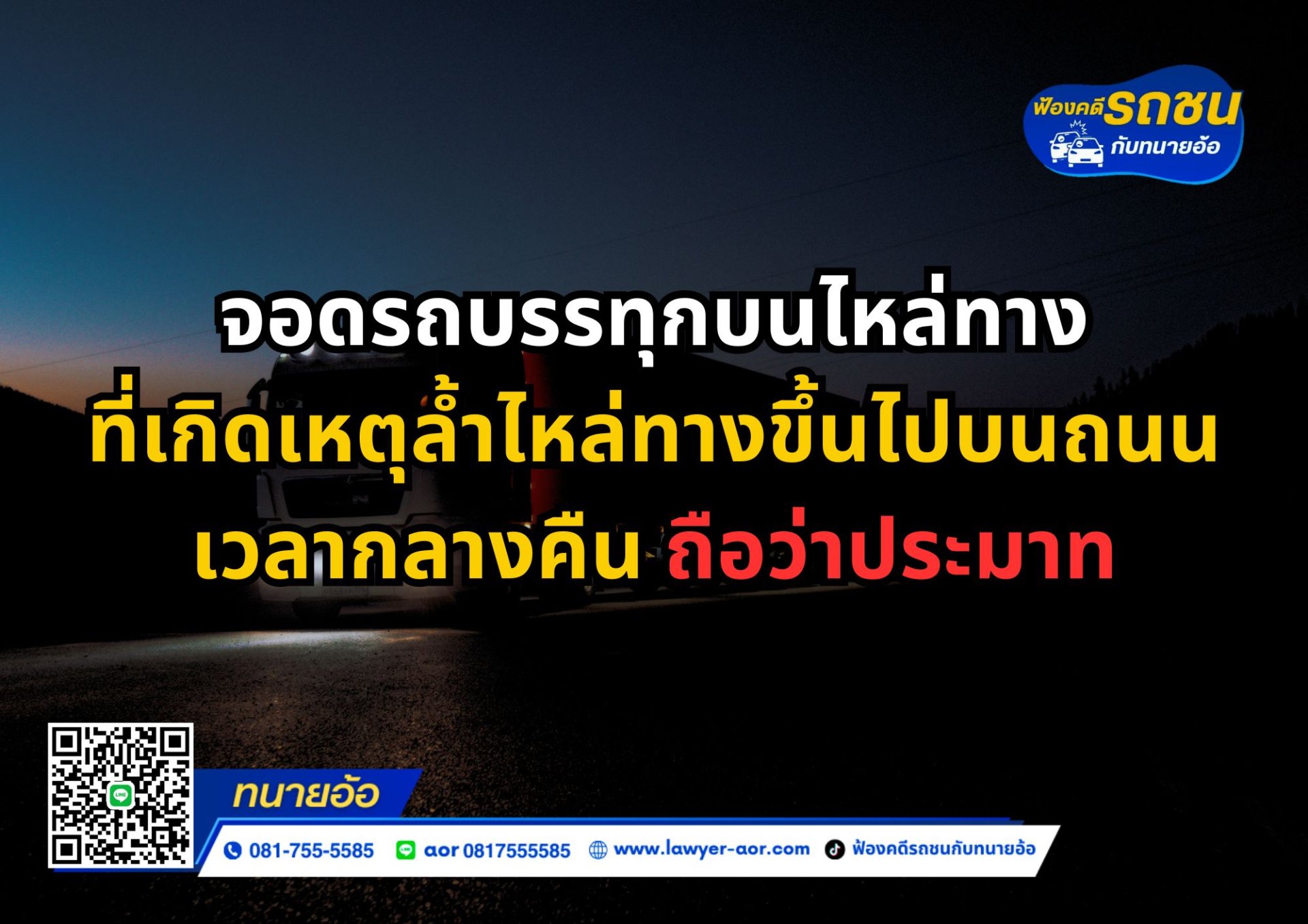 จอดรถบรรทุกบนไหล่ทาง ที่เกิดเหตุล้ำไหล่ทางขึ้นไปบนถนน เวลากลางคืน ถือว่าประมาท
