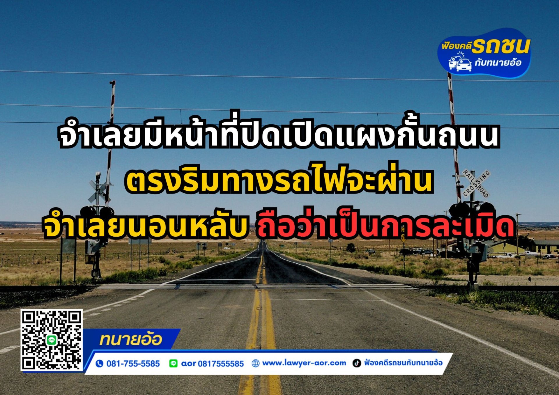 ข้อเท็จจริงได้ความว่า ตรงถนนซึ่งทางรถไฟผ่านซึ่งเป็นที่เกิดเหตุทางการรถไฟได้ทำเครื่องกีดกั้นทางจราจรยวดยานอื่นที่จะผ่านทางรถไฟในขณะเมื่อจะมีรถไฟผ่านไปมา เครื่องกีดกั้นนั้นยกขึ้นลงด้วยเครื่องกว้าน จำเลยที่ ๑ เป็นเจ้าหน้าที่ในการนี้ เมื่อเวลาจะมีรถไฟผ่าน จำเลยที่ ๑ ก็เลื่อนเครื่องกีดกั้นถนน เมื่อรถไฟผ่านไปแล้ว จำเลยที่ ๑ ก็ยกเครื่องกีดกั้นถนนให้ยวดยานต่าง ๆ ผ่านไปได้ และจำเลยที่ ๑ ยังมีหน้าที่ให้ไฟสัญญานไฟแก่พนักงานขับรถไฟด้วย ขณะเกิดเหตุ จำเลยที่ ๑ นอนหลับไม่ได้ปิดกั้นถนนและไม่ได้ให้สัญญาณรถไฟผ่าน