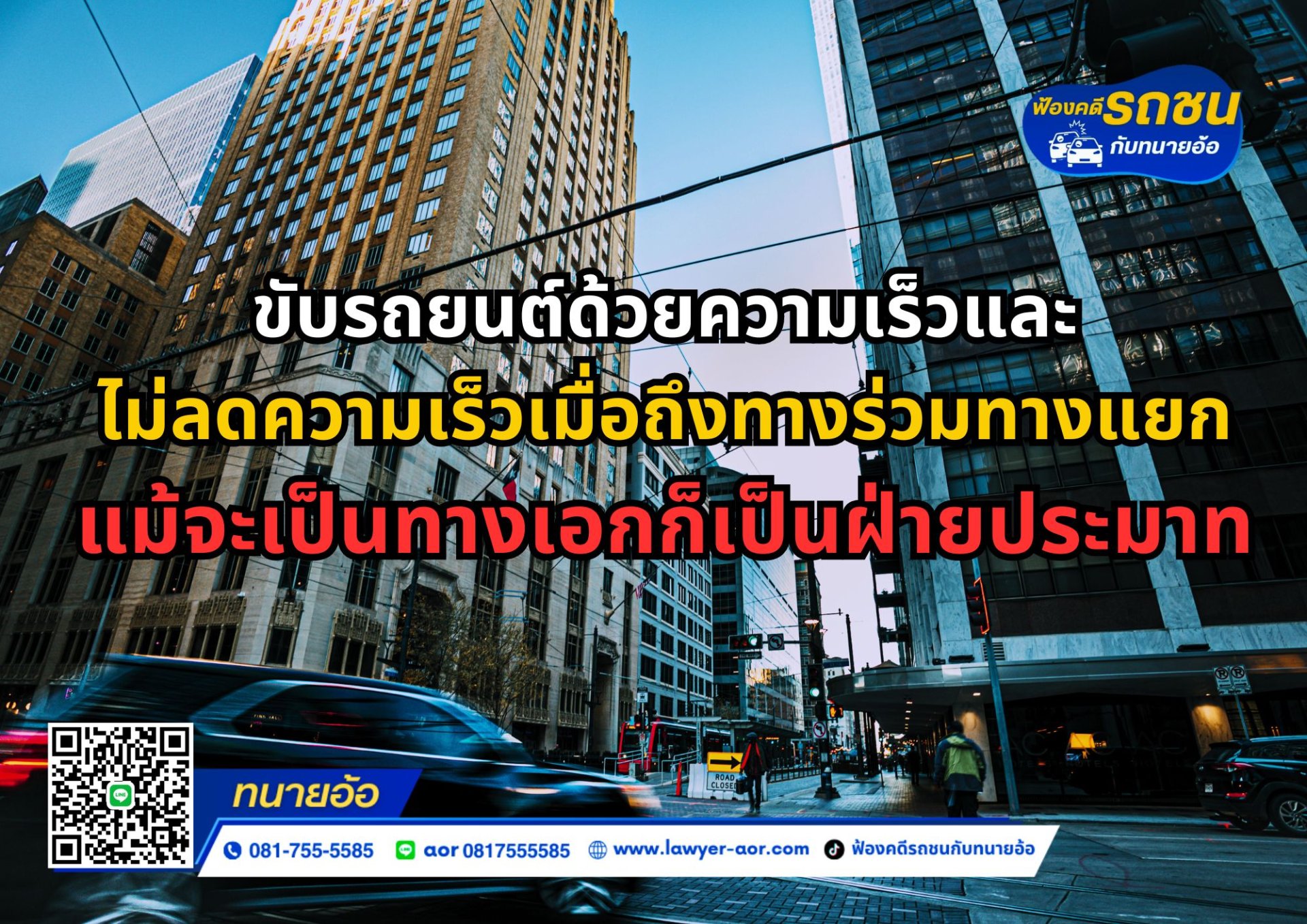 ขับรถยนต์ด้วยความเร็วและ ไม่ลดความเร็วเมื่อถึงทางร่วมทางแยก แม้จะเป็นทางเอกก็เป็นฝ่ายประมาท