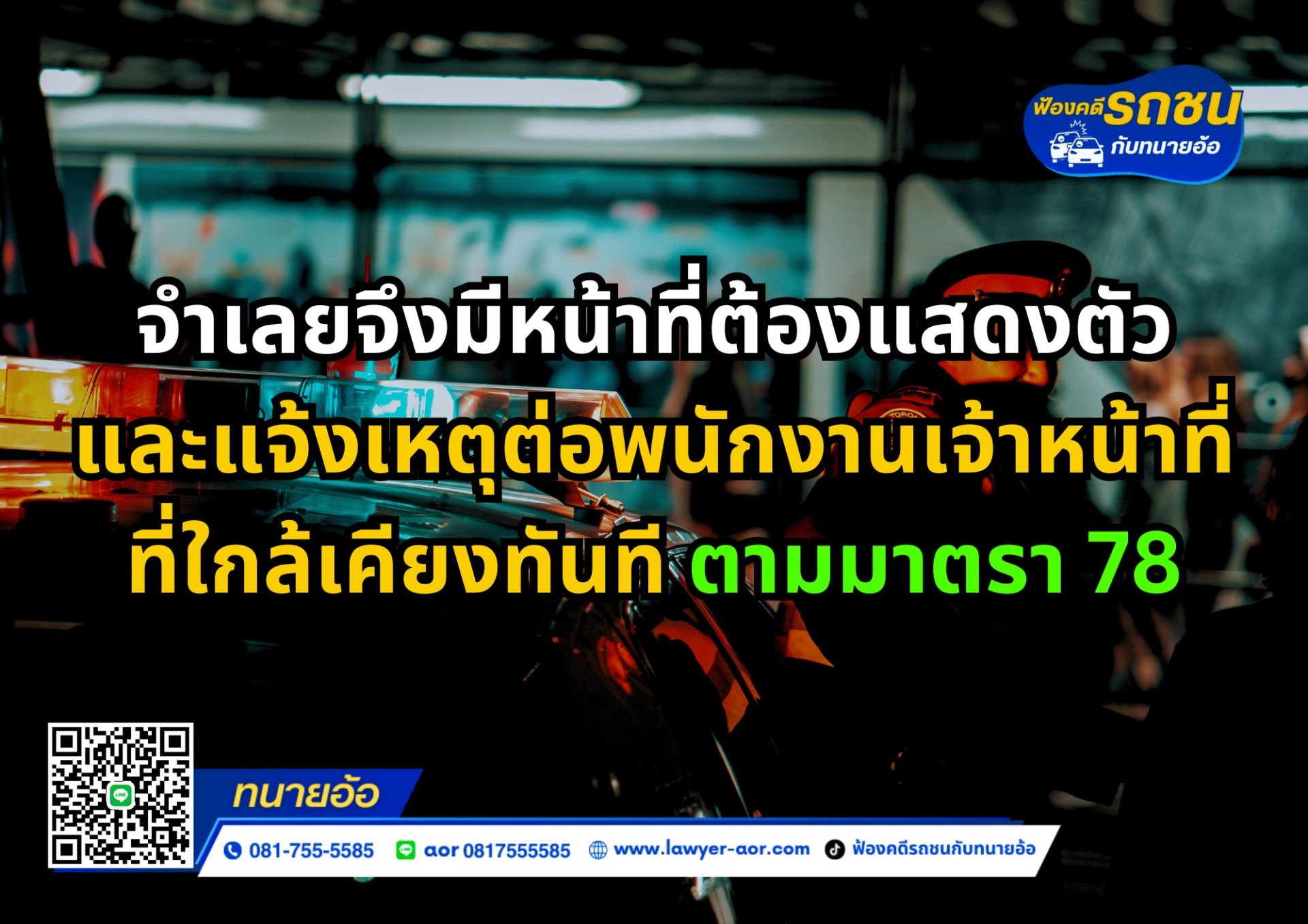 จำเลยจึงมีหน้าที่ต้องแสดงตัวและแจ้งเหตุต่อพนักงานเจ้าหน้าที่ที่ใกล้เคียงทันที ตามมาตรา 78....