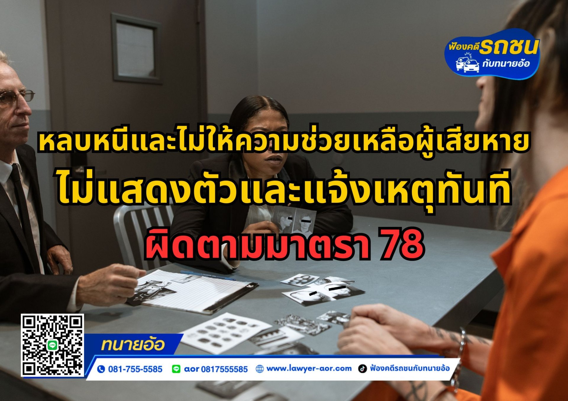 หลบหนีและไม่ให้ความช่วยเหลือผู้เสียหาย ไม่แสดงตัวและแจ้งเหตุทันที ผิดตามมาตรา 78