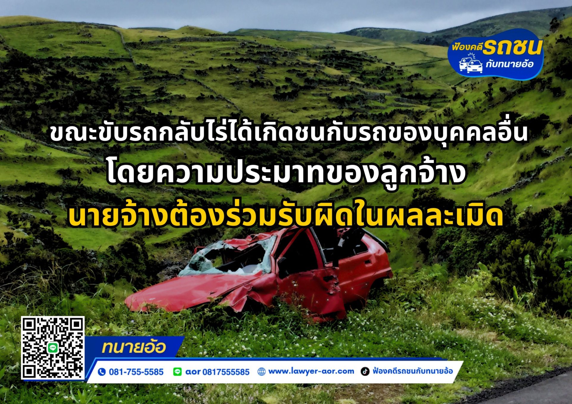 ขณะขับรถกลับไร่ได้เกิดชนกับรถของบุคคลอื่น โดยความประมาทของลูกจ้าง นายจ้างต้องร่วมรับผิดในผลละเมิด