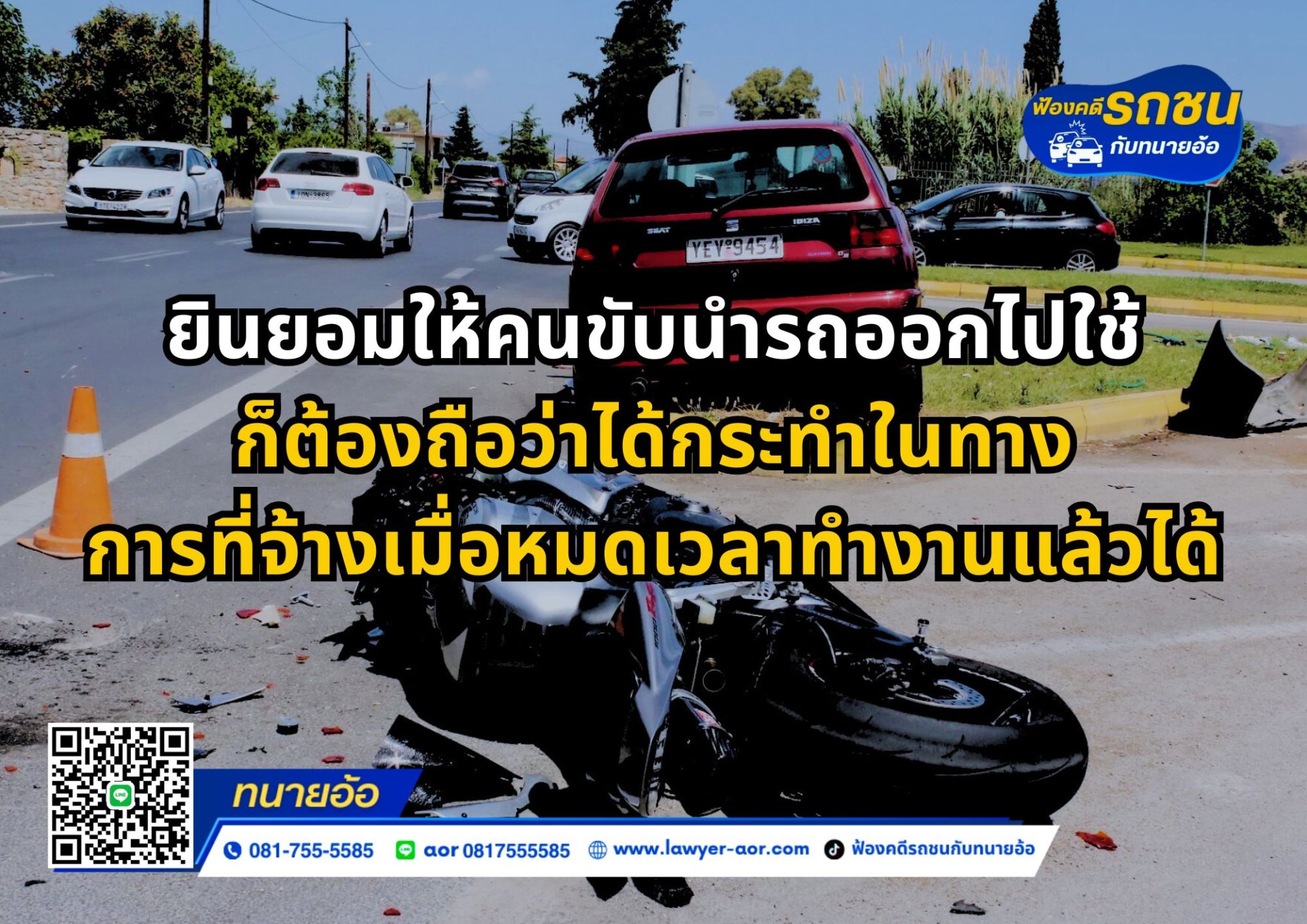 ยินยอมให้คนขับนำรถออกไปใช้ ก็ต้องถือว่าได้กระทำในทาง การที่จ้างเมื่อหมดเวลาทำงานแล้วได้