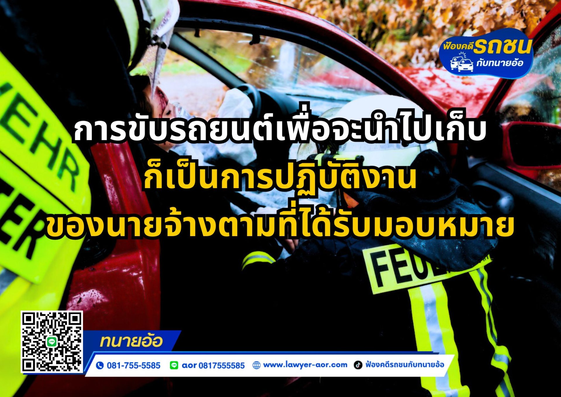 การขับรถยนต์เพื่อจะนำไปเก็บ ก็เป็นการปฏิบัติงาน ของนายจ้างตามที่ได้รับมอบหมาย