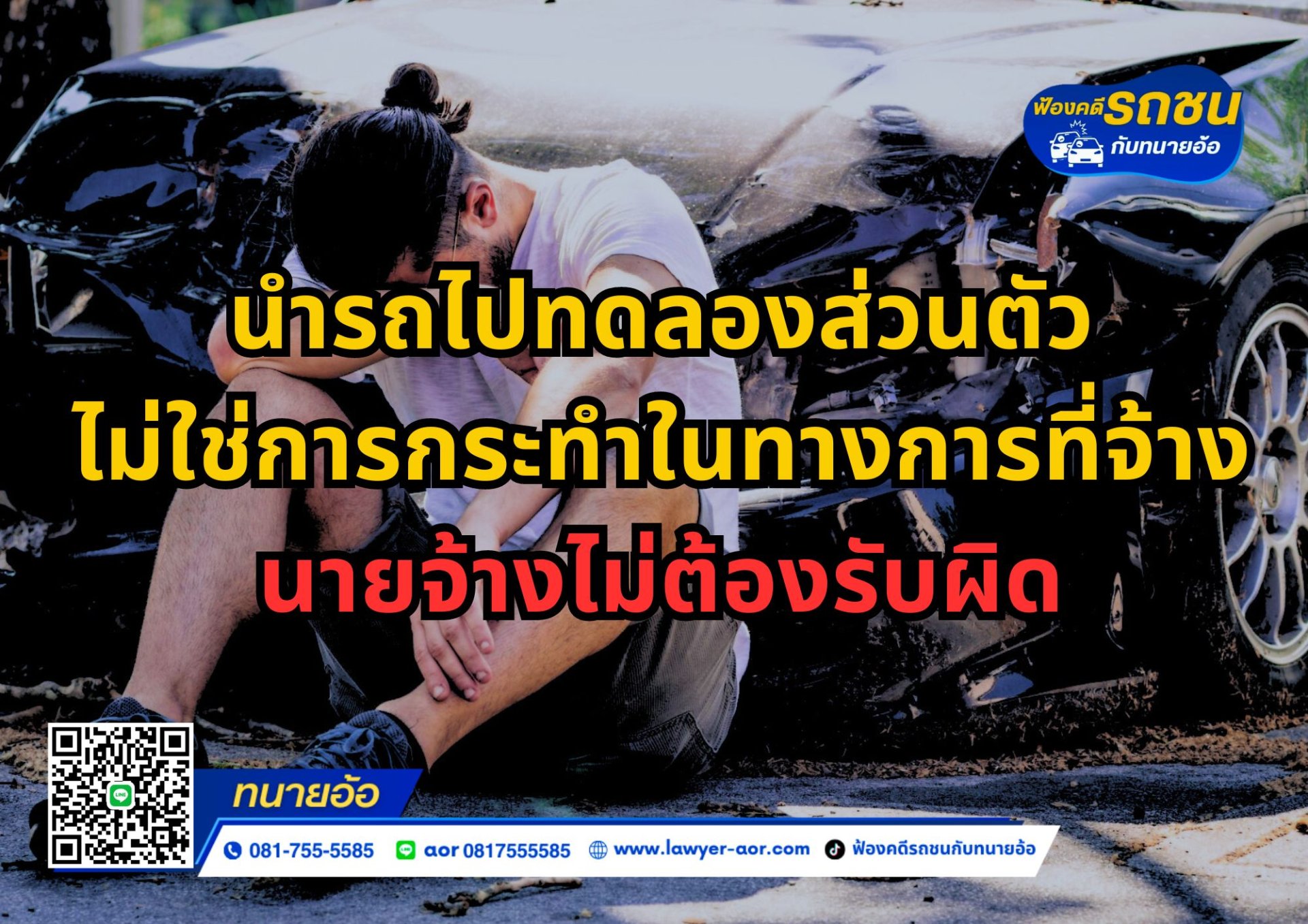 นำรถไปทดลองส่วนตัว ไม่ใช่การกระทำในทางการที่จ้าง นายจ้างไม่ต้องรับผิด