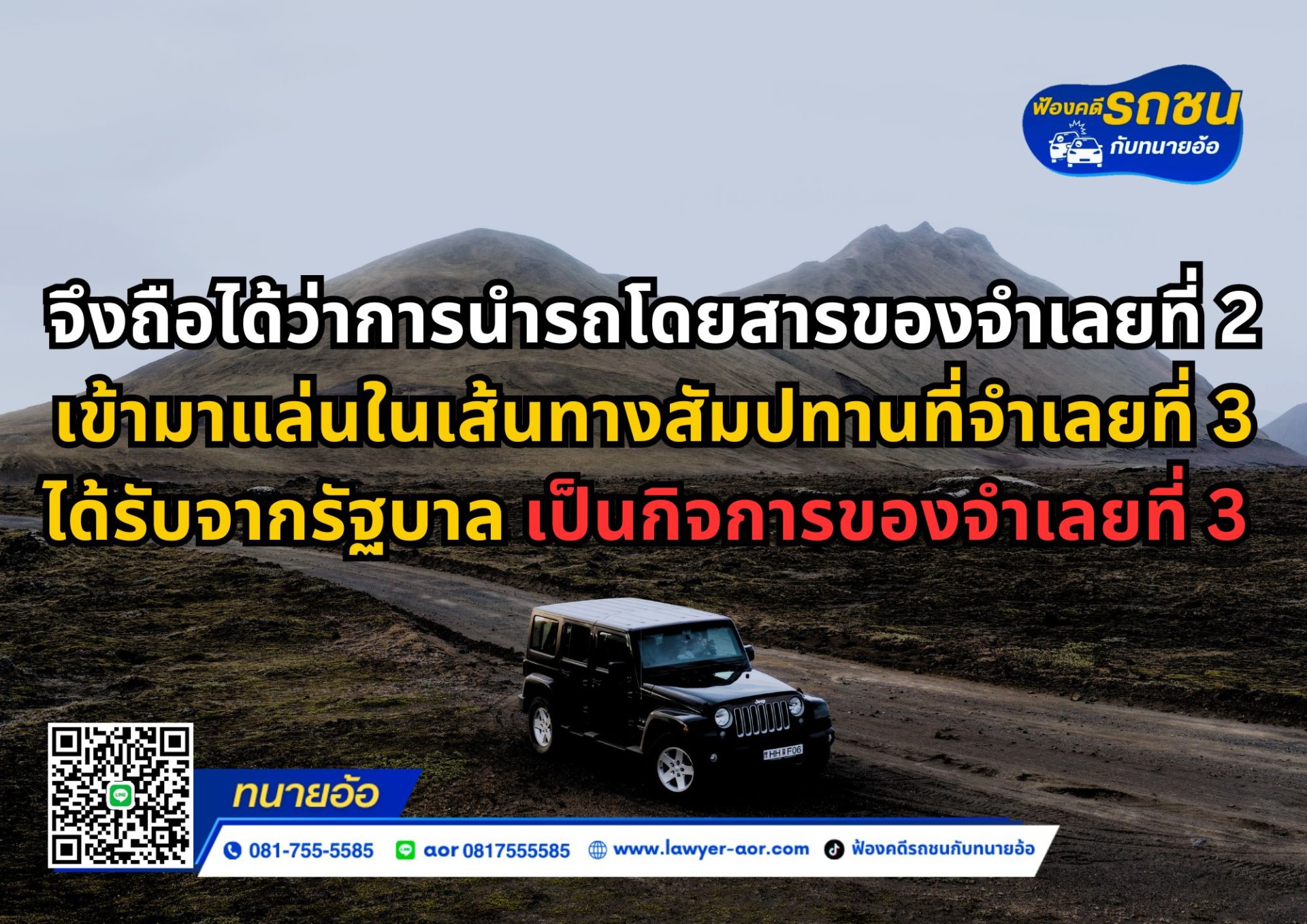 แม้จำเลยที่ 3 จะมิได้เป็นนายจ้างจำเลยที่ 1 ก็ตาม แต่นายปรีด์ วังศกาญจน์ กรรมการผู้จัดการ บริษัทจำเลยที่ 2 ซึ่งเป็นพยานจำเลยที่ 2 เบิกความว่า รถยนต์โดยสารประจำทางคันเกิดเหตุซึ่งเป็นของจำเลยที่ 2 นั้น จำเลยที่ 2 ได้นำมาวิ่งรับส่งคนโดยสารร่วมกับจำเลยที่ 3 ในเส้นทางการเดินรถของจำเลยที่ 3 และปรากฏว่าพนักงานเก็บเงินค่าโดยสารของรถยนต์โดยสารประจำทางดังกล่าวก็เป็นพนักงานของจำเลยที่ 3 จึงถือได้ว่าการนำรถโดยสารของจำเลยที่ 2 เข้ามาแล่นในเส้นทางสัมปทานที่จำเลยที่ 3 ได้รับจากรัฐบาลเป็นกิจการของจำเลยที่ 3 และจำเลยที่ 1 ก็เป็นลูกจ้างของจำเลยที่ 3 ด้วย จำเลยที่ 3 จะปฏิเสธความรับผิดชอบในการที่จำเลยที่ 1 ขับรถโดยประมาทหาได้ไม่