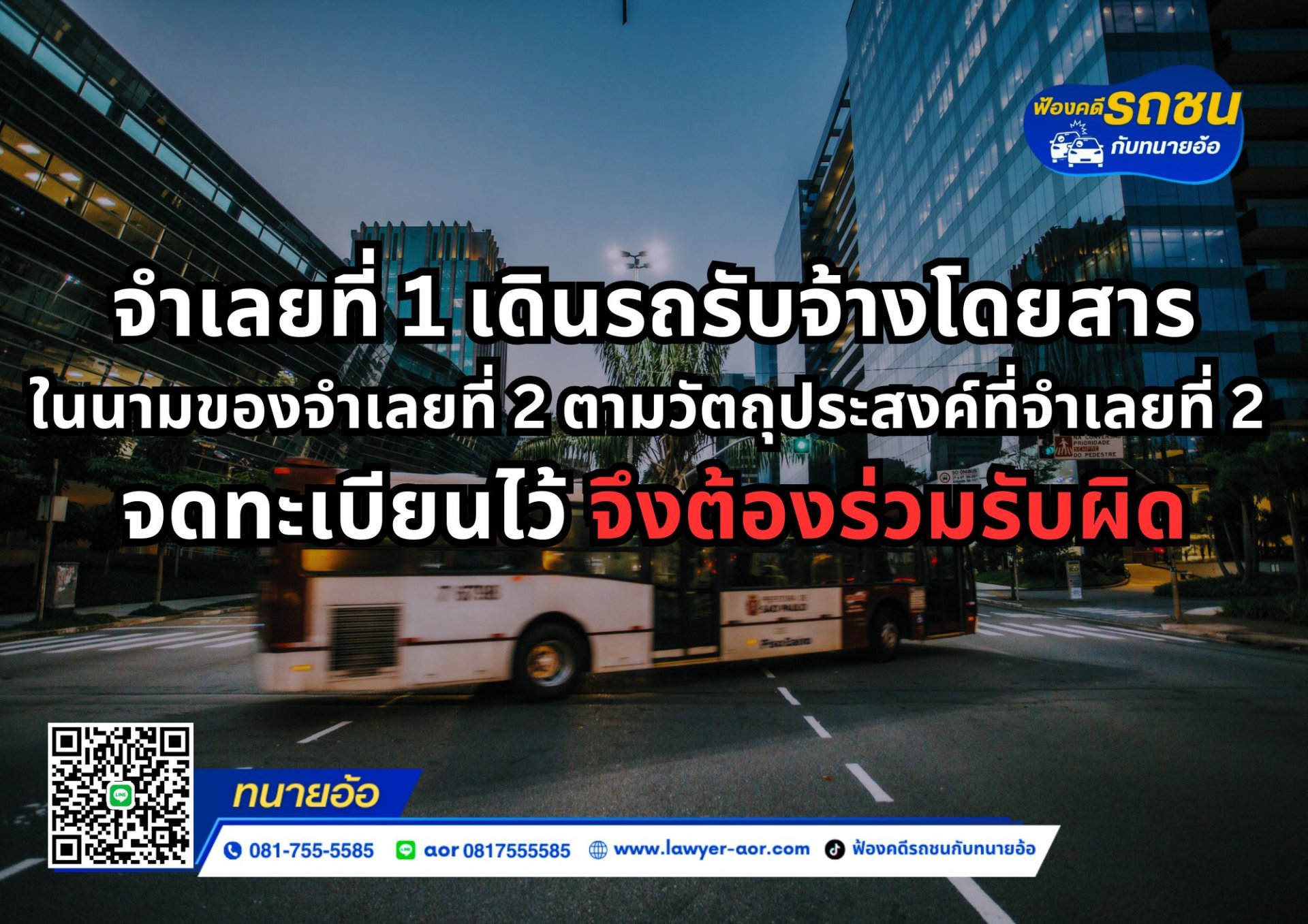 จำเลยที่ 1 เดินรถรับจ้างโดยสารในนามของจำเลยที่ 2 ตามวัตถุประสงค์ที่จำเลยที่ 2 จดทะเบียนไว้ จึงต้องร่วมรับผิด