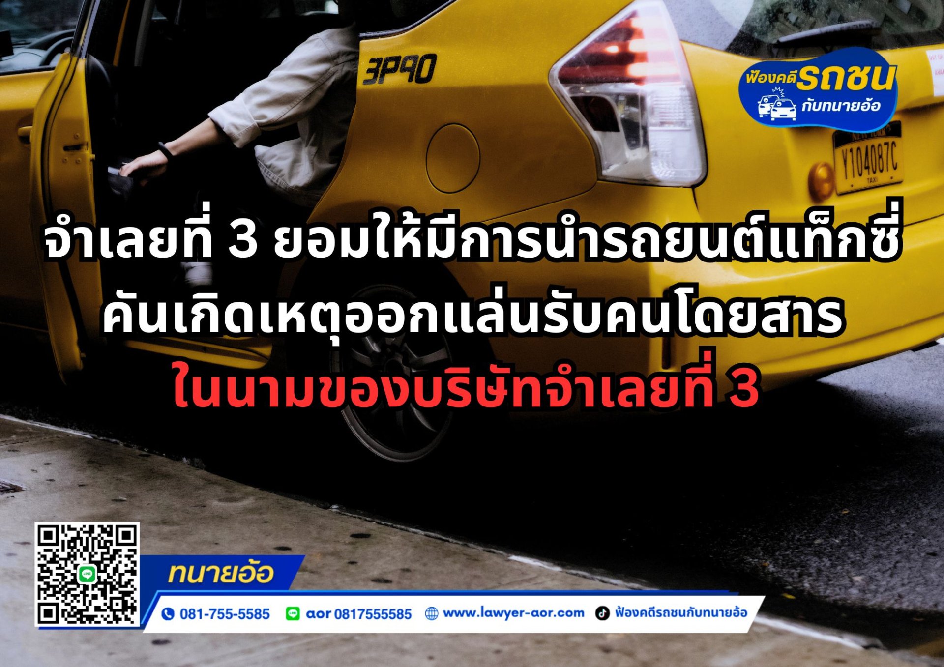 จำเลยที่ 3 ยอมให้มีการนำรถยนต์แท็กซี่คันเกิดเหตุออกแล่นรับคนโดยสารในนามของบริษัทจำเลยที่ 3