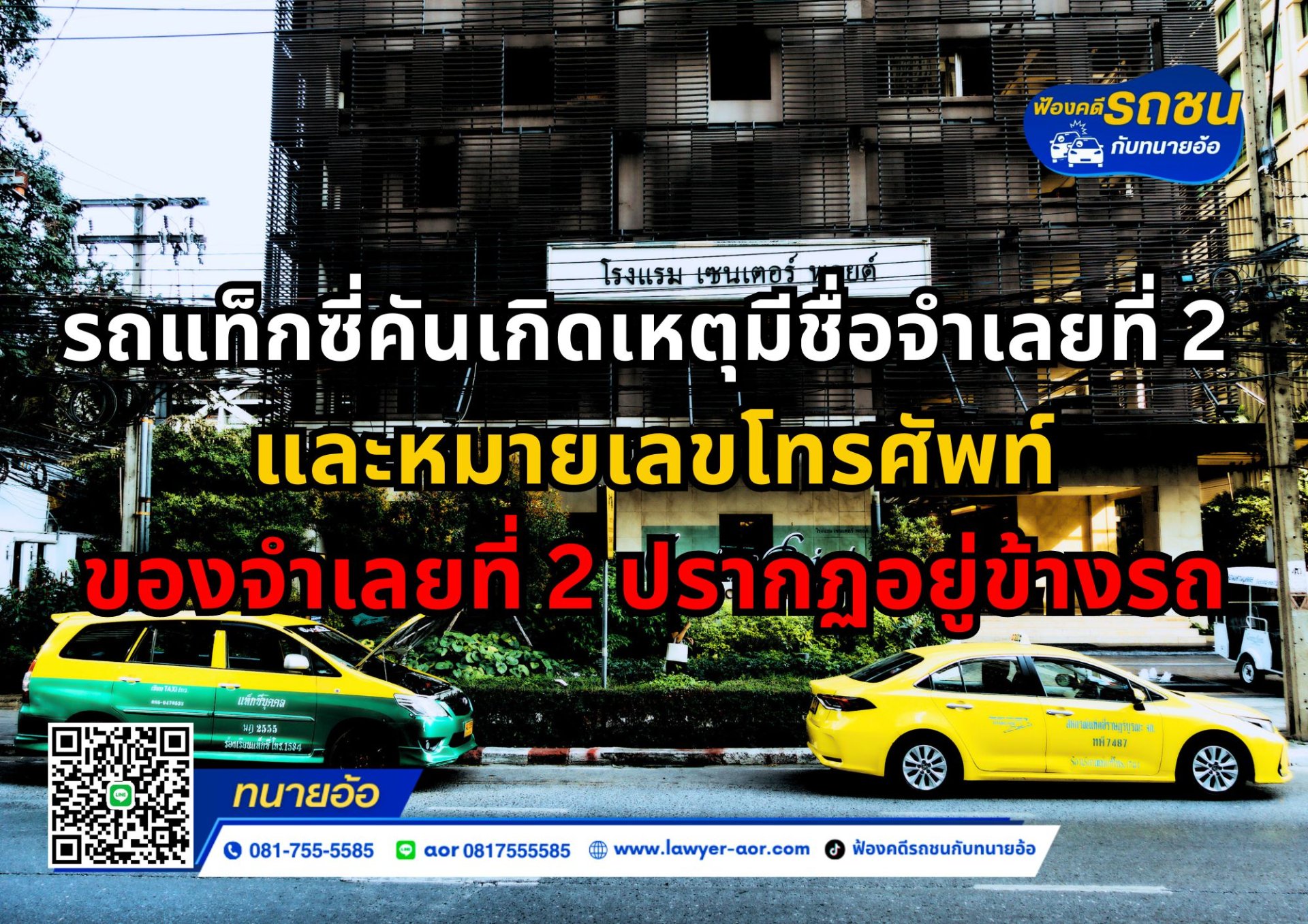 รถแท็กซี่คันเกิดเหตุมีชื่อจำเลยที่ 2 และหมายเลขโทรศัพท์ของจำเลยที่ 2 ปรากฏอยู่ข้างรถ