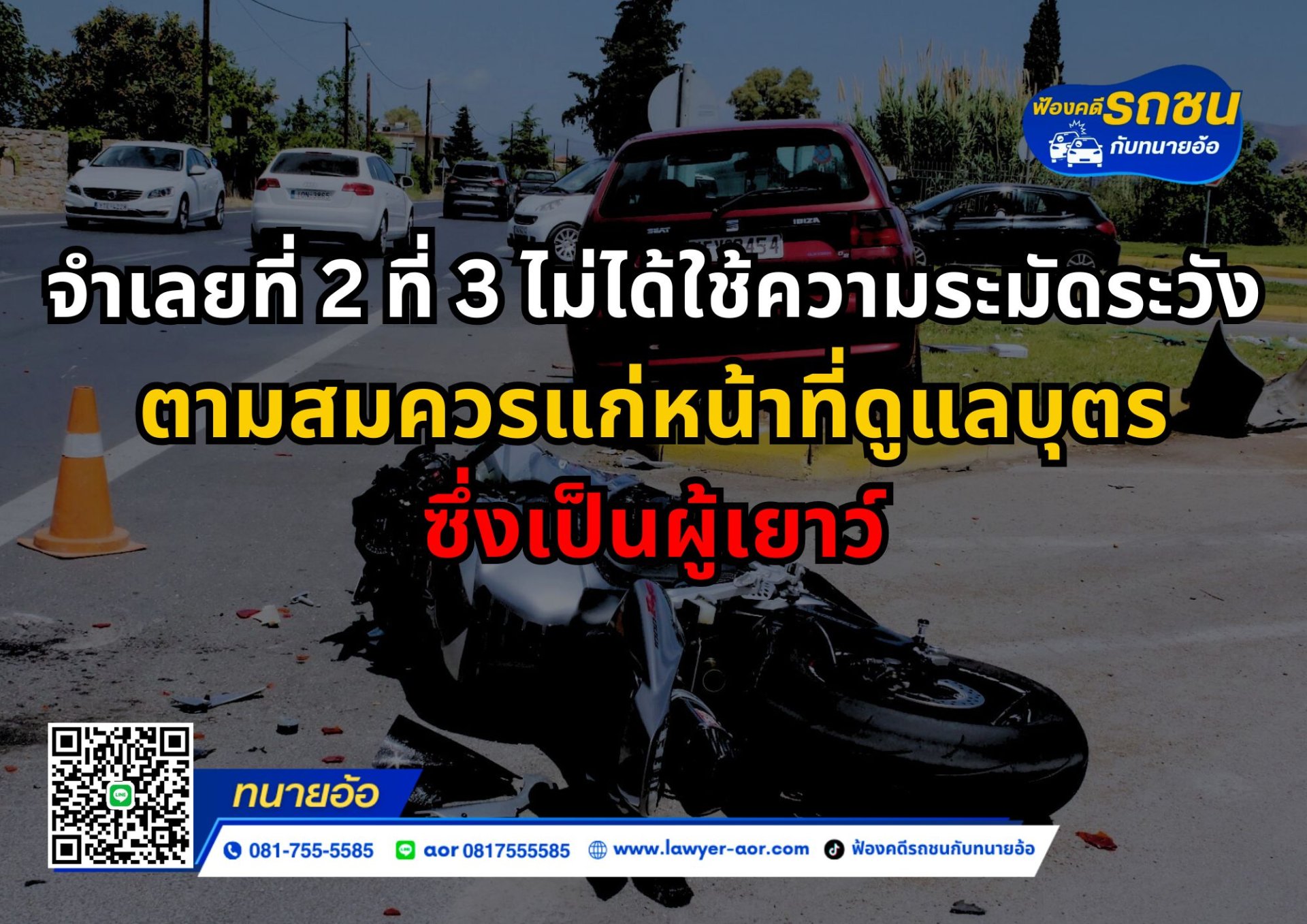จำเลยที่ 2 ที่ 3 ไม่ได้ใช้ความระมัดระวังตามสมควรแก่หน้าที่ดูแลบุตรซึ่งเป็นผู้เยาว์