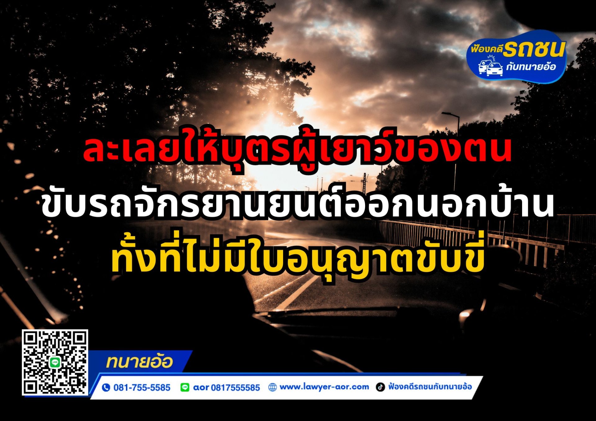 ละเลยให้บุตรผู้เยาว์ของตนขับรถจักรยานยนต์ออกนอกบ้านทั้งที่ไม่มีใบอนุญาตขับขี่
