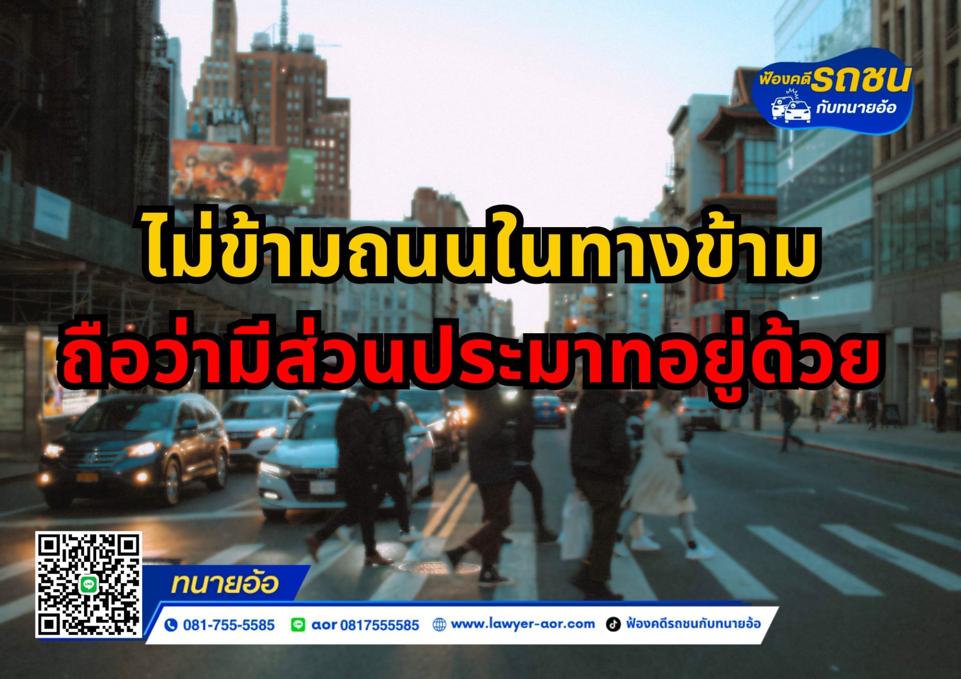 ไม่ข้ามถนนในทางข้าม ถือว่ามีส่วนประมาทอยู่ด้วย