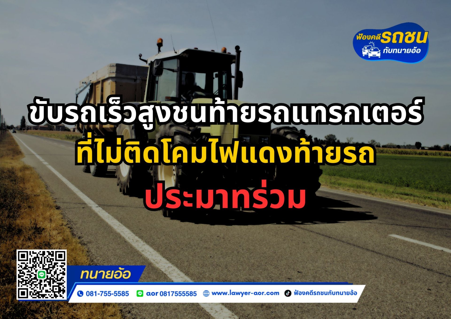 ขับรถเร็วสูงชนท้ายรถแทรกเตอร์ที่ไม่ติดโคมไฟแดงท้ายรถ ประมาทร่วม