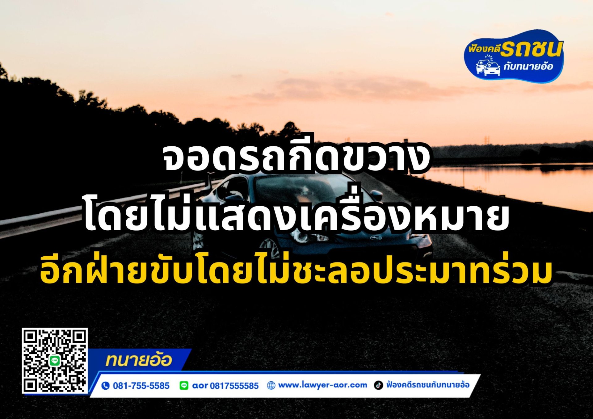 จอดรถกีดขวางโดยไม่แสดงเครื่องหมายอีกฝ่ายขับโดยไม่ชะลอ ประมาทร่วม