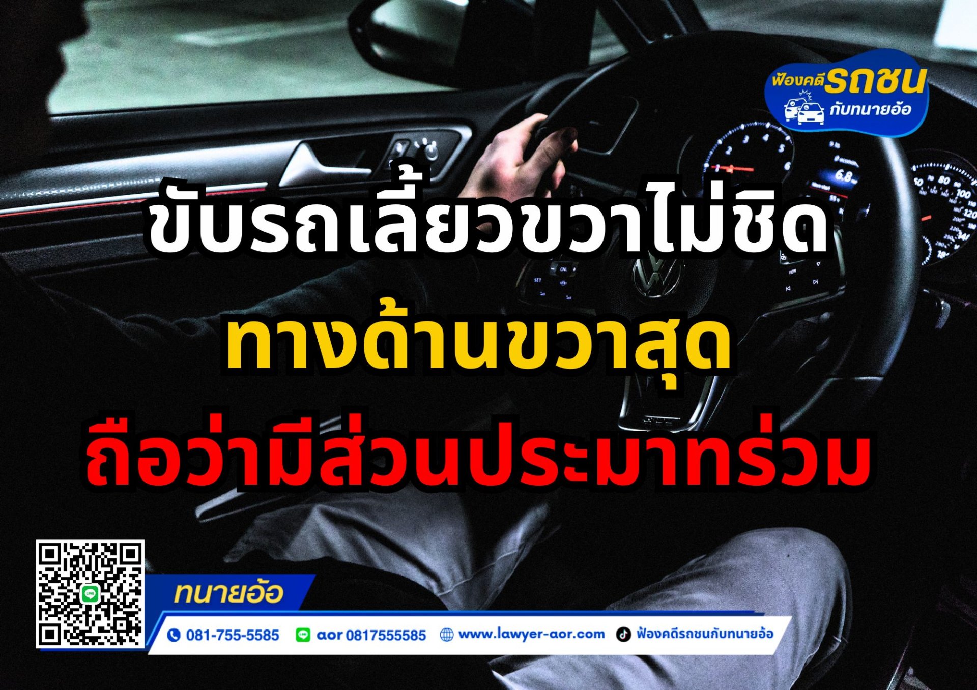 ขับรถเลี้ยวขวาไม่ชิดทางด้านขวาสุด ถือว่ามีส่วนประมาทร่วม