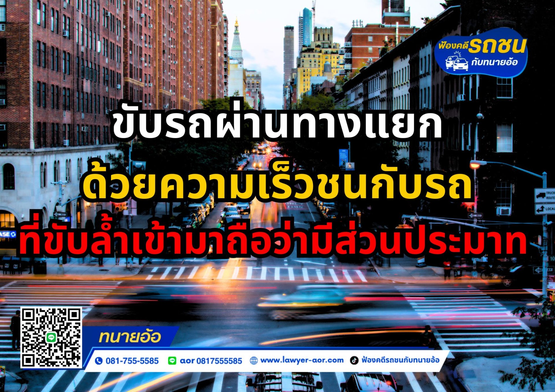ขับรถผ่านทางแยกด้วยความเร็วชนกับรถที่ขับล้ำเข้ามาถือว่ามีส่วนประมาท