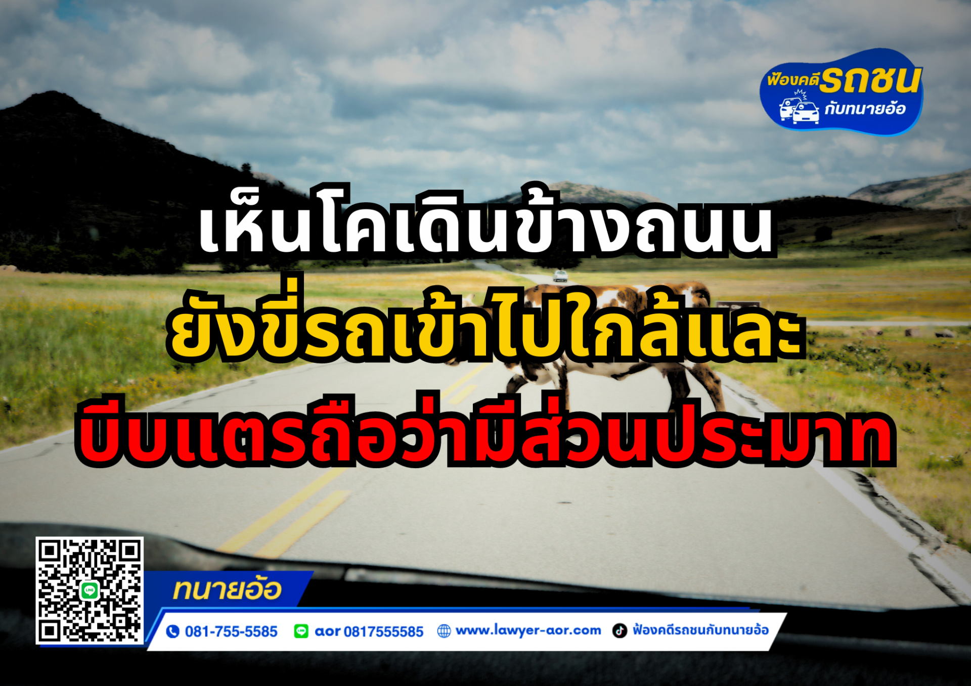 เห็นโคเดินข้างถนน ยังขี่รถเข้าไปใกล้และบีบแตรถือว่ามีส่วนประมาท