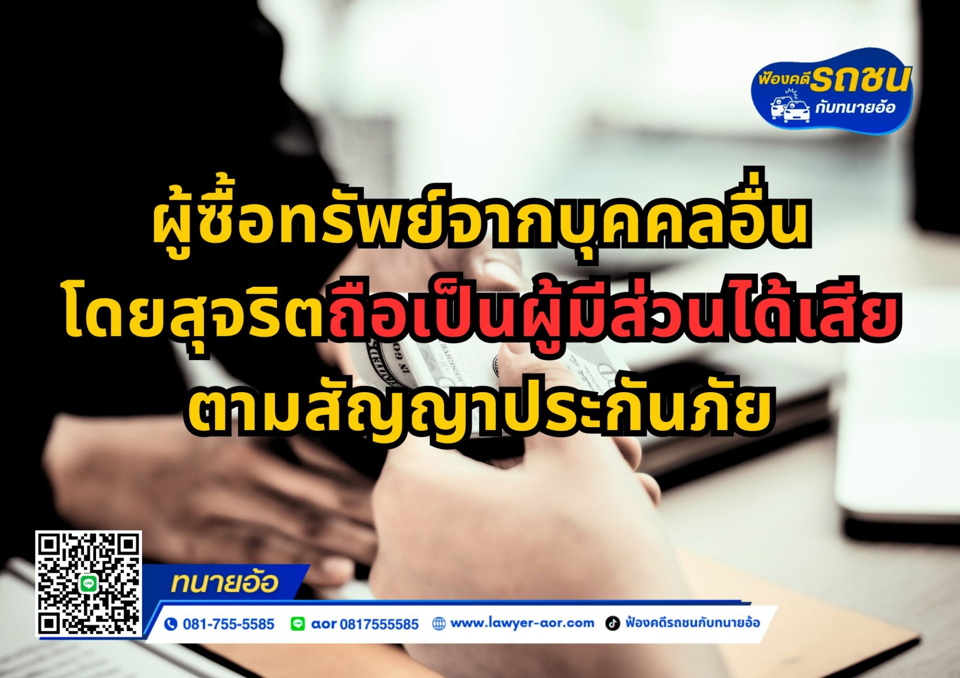 ผู้ซื้อทรัพย์จากบุคคลอี่นโดยสุจริต ถือเป็นผู้มีส่วนได้เสียตามสัญญาประกันภัย