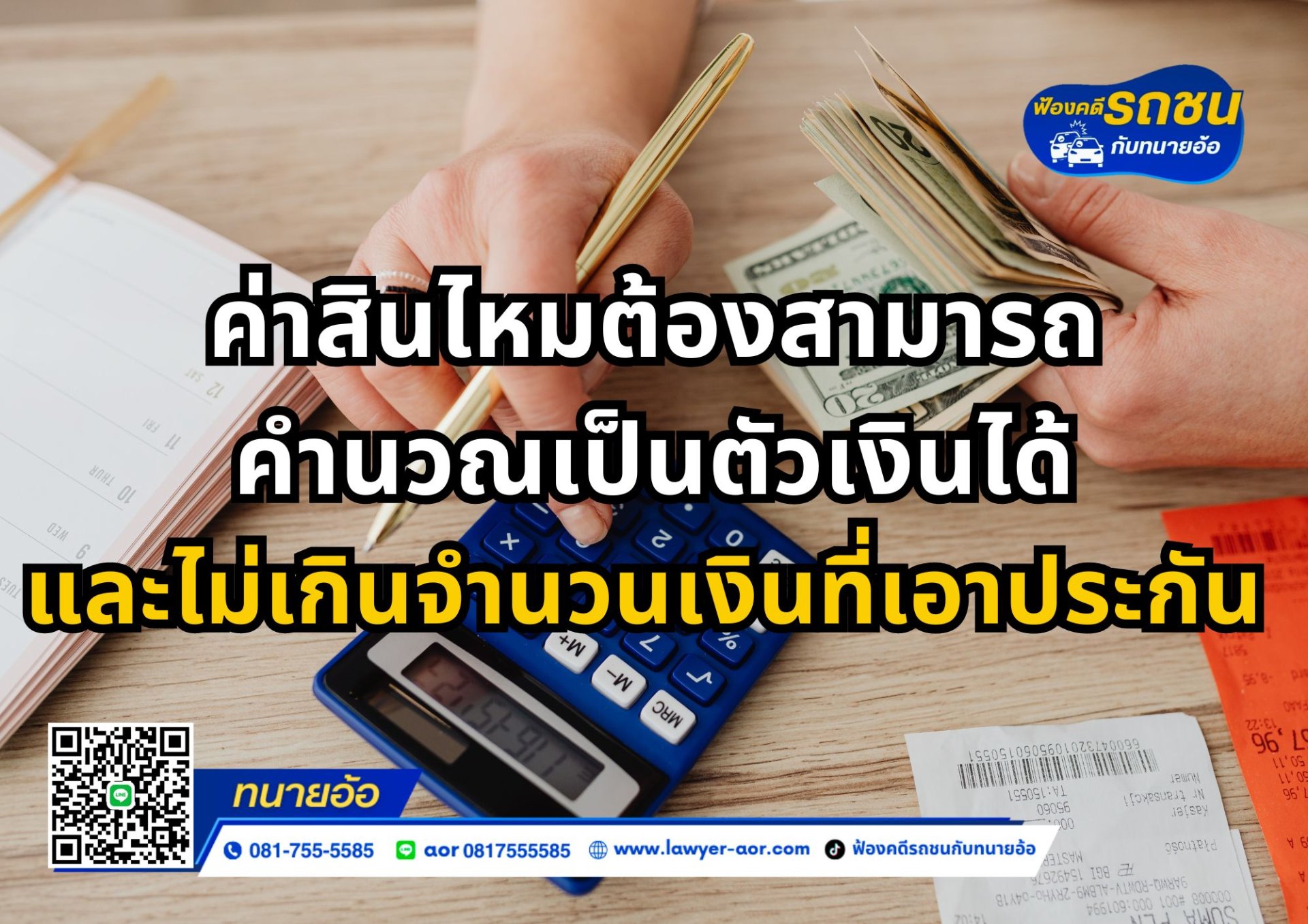 ค่าสินไหมต้องสามารถคำนวณเป็นตัวเงินได้และไม่เกินจำนวนเงินที่เอาประกัน