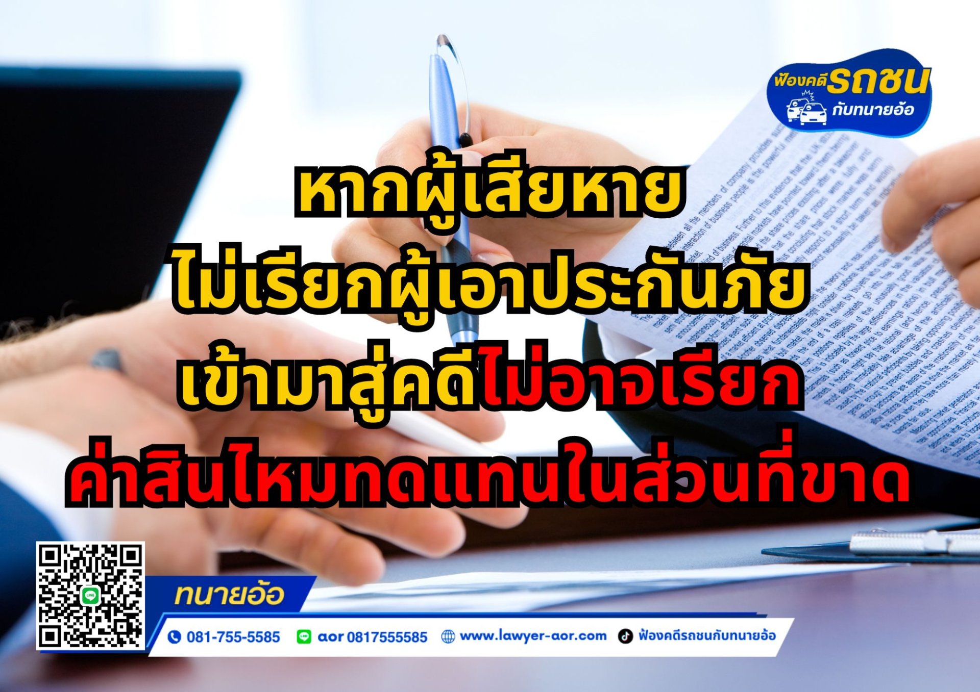 ผู้เสียหายไม่เรียกผู้เอาประกันภัยเข้ามาสู่คดีไม่อาจเรียกส่วนที่ขาด