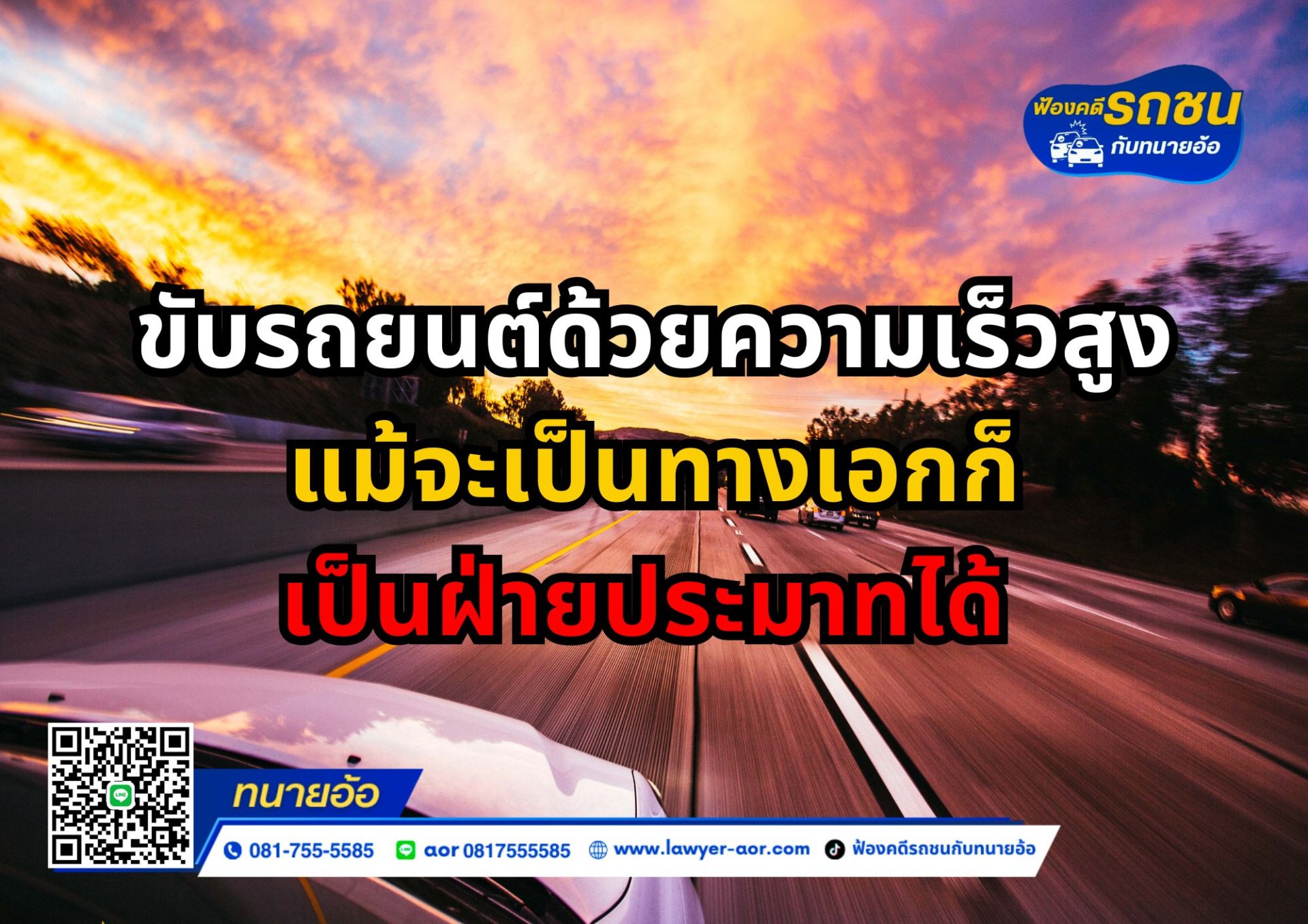 ขับรถยนต์ด้วยความเร็วสูงมากแม้จะเป็นทางเอกก็เป็นฝ่ายประมาทได้