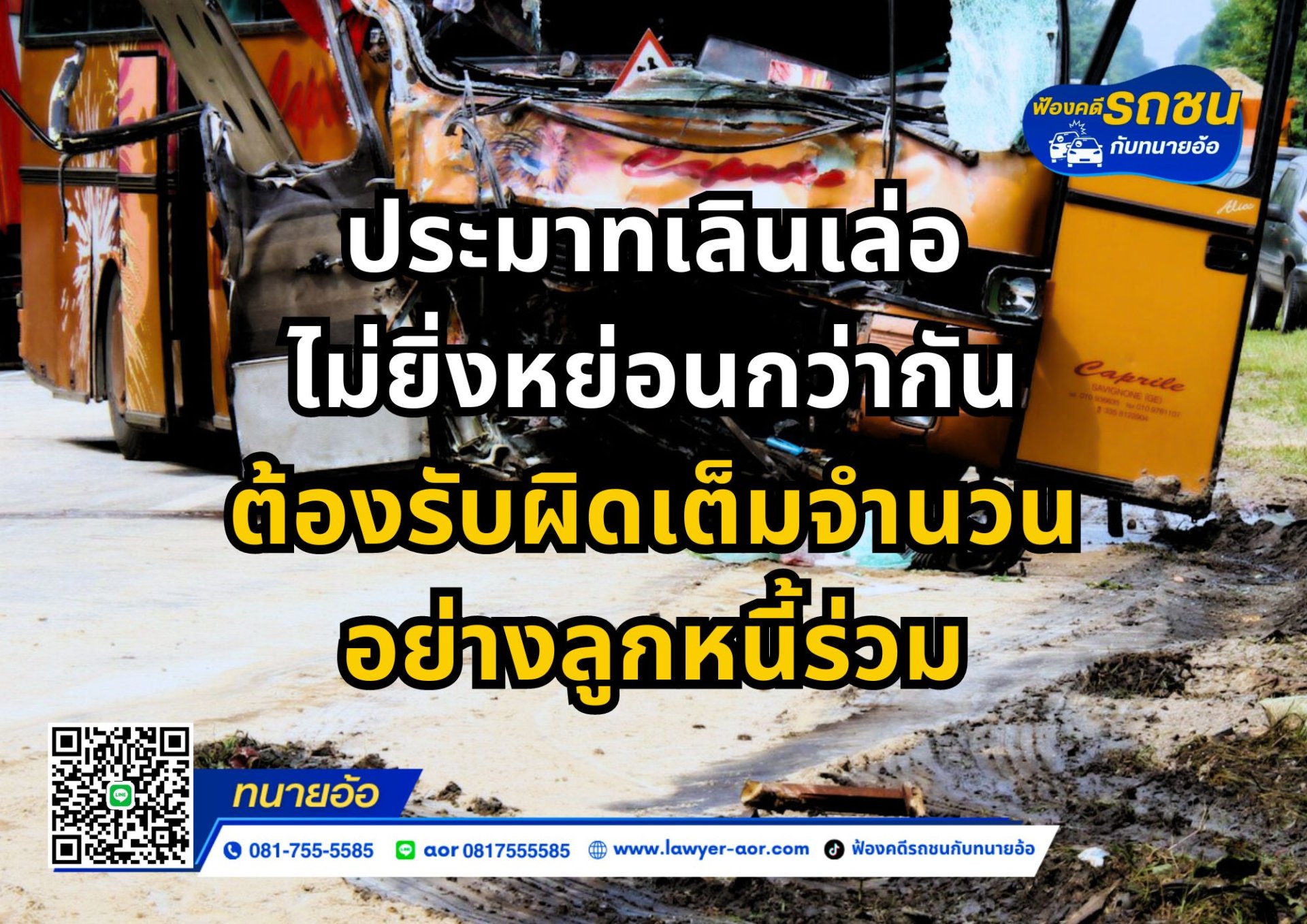 ประมาทเลินเล่อไม่ยิ่งหย่อนกว่ากันต้องรับผิดเต็มจำนวนอย่างลูกหนี้ร่วม