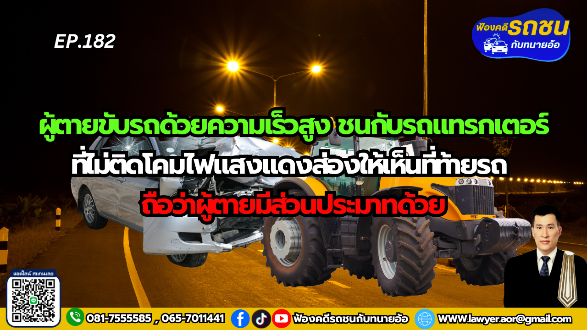 ขับรถด้วยความเร็วสูงชนรถแทรกเตอร์ที่ไม่ติดไฟท้ายรถ ถือว่ามีส่วนประมาท