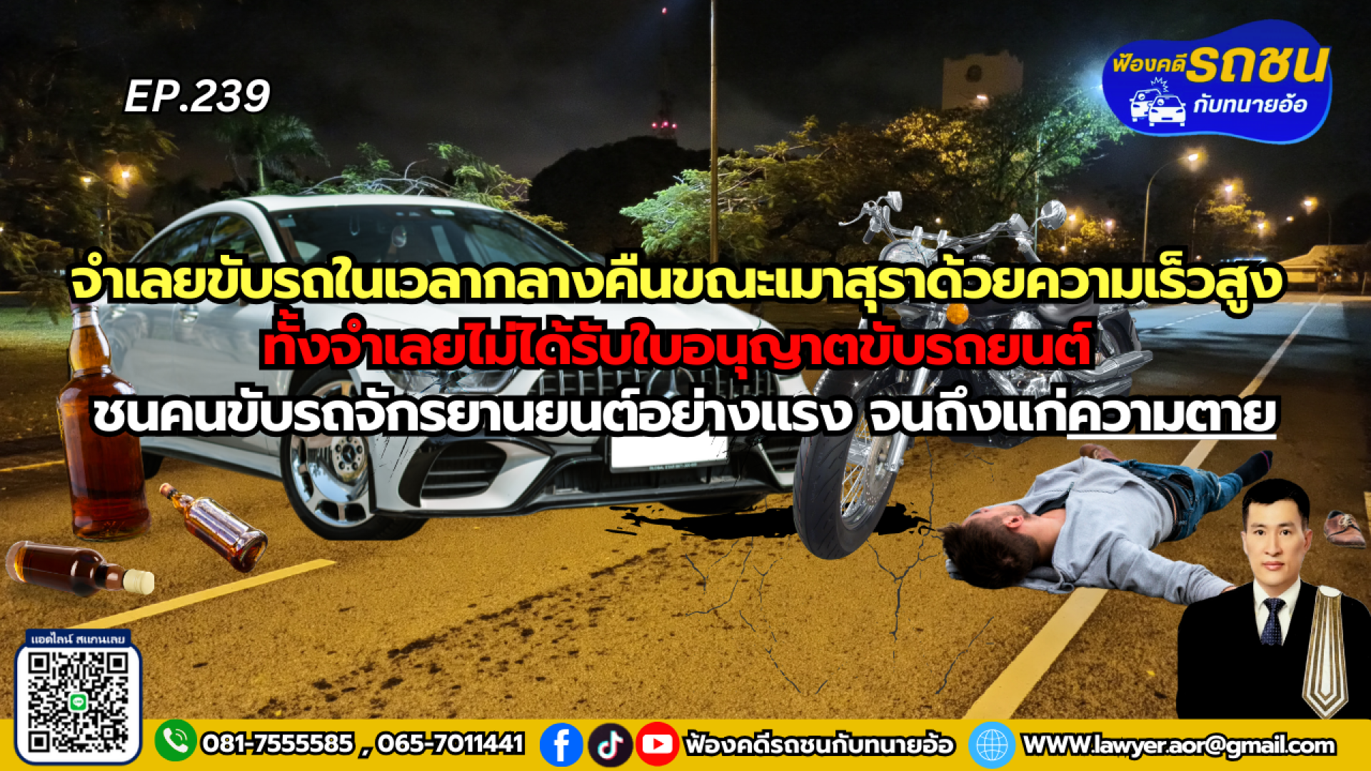 จำเลยขับรถตอนกลางคืน เมาสุรา ไม่มีใบขับขี่ ชนคนขับรถจักรยานยนต์เสียชีวิต