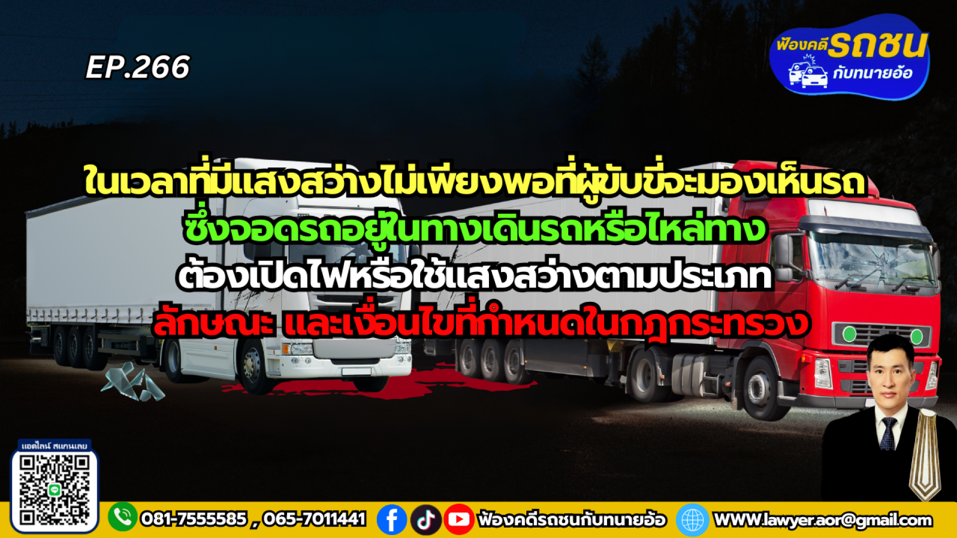 เวลาที่แสงไม่พอที่ผู้ขับจะมองเห็นรถที่จอดอยู่ต้องเปิดไฟตามกำหนดกฎกระทรวง
