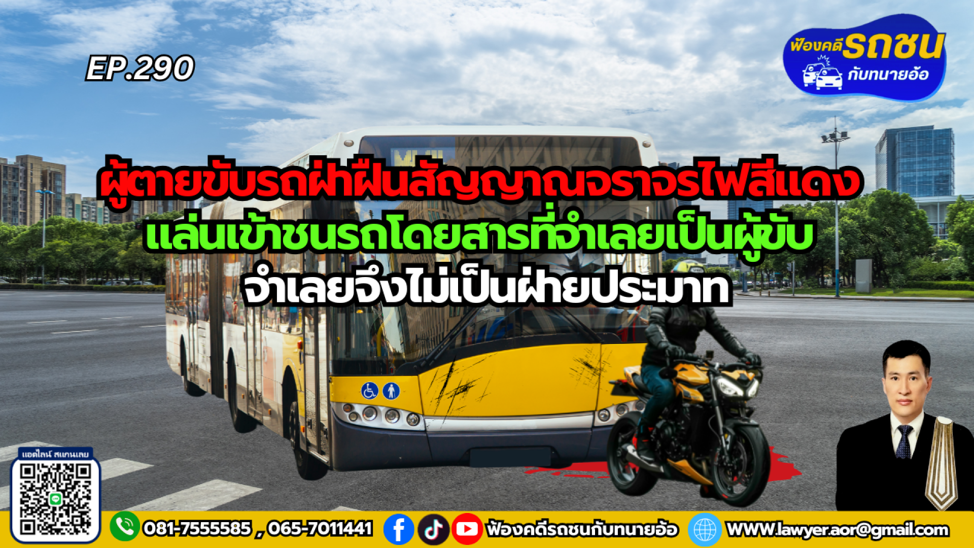 อุบัติเหตุที่เกิดจากการกระทำของผู้ตาย ขับรถฝ่าฝืนสัญญาณจราจรชนรถโดยสาร