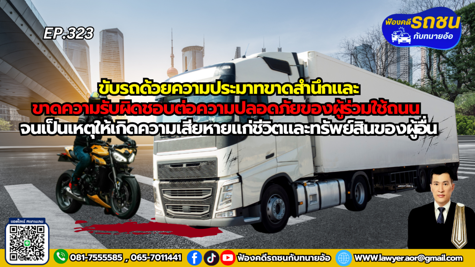 ขับรถประมาท จนเป็นเหตุให้เกิดความเสียหายแก่ชีวิตและทรัพย์สินของผู้อื่น