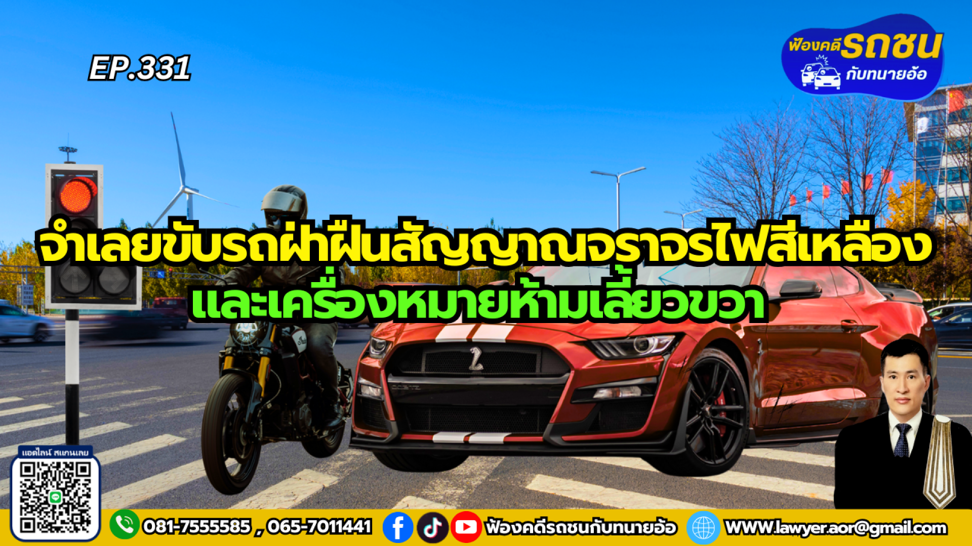 จำเลยขับรถฝ่าฝืนสัญญาณจราจรไฟสีเหลืองและเครื่องหมายห้ามเลี้ยวขวา