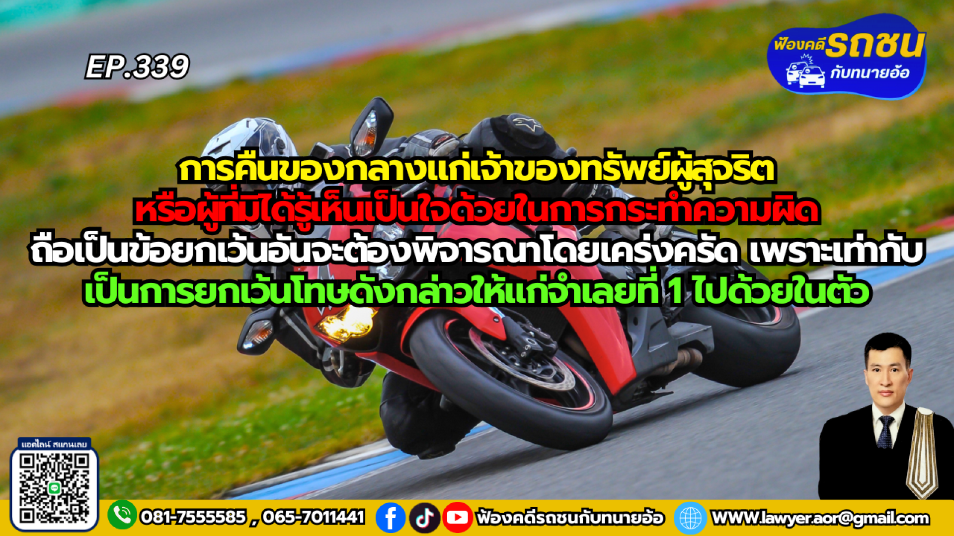 ศาลอุทธรณ์ภาค 9 พิพากษากลับ ให้คืนรถจักรยานยนต์ของกลางแก่ผู้ร้อง