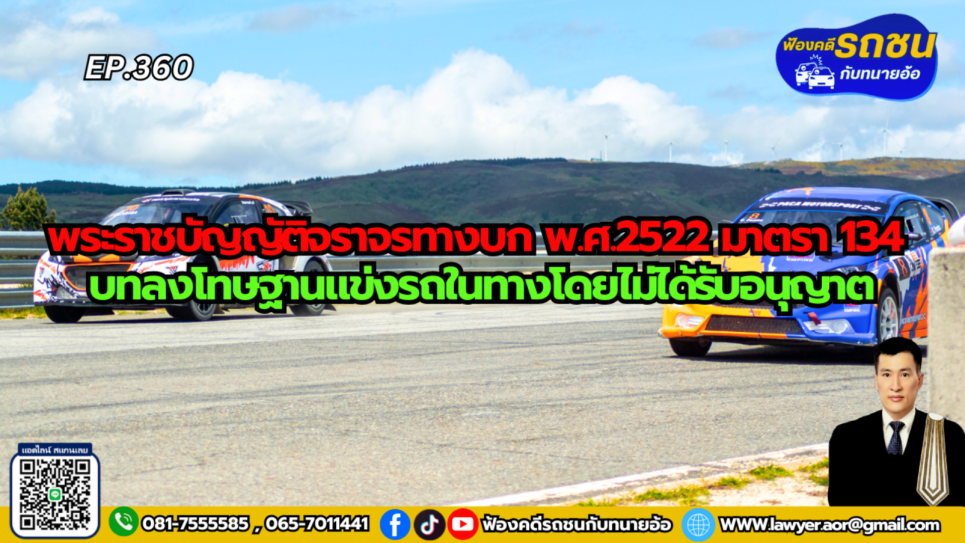 พระราชบัญญัติจราจรทางบกพ.ศ.2522 มาตรา 134 ลงโทษฐานแข่งรถโดยไม่ได้รับอนุญาต